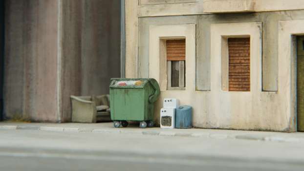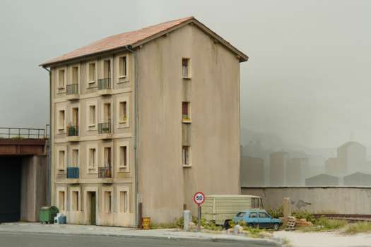 This 1:87 model is based on a real place close to Bilbao, in Northern Spain. The building block is a reduced version of the real thing, scratch built from my own drawings and pictures taken on location. This diorama is functional – trains can run on it – and has its own lighting system.